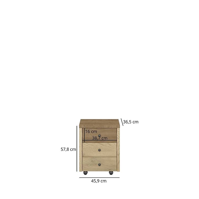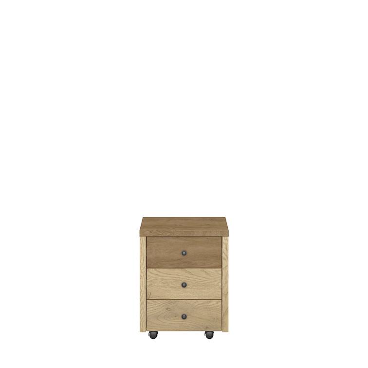 Kontejner Denzel 3S v kombinaci Dub Cremona / Dub Lefkas je praktický a stylově čistý doplněk studentského i pracovního pokoje. Decentní propojení dvou odstínů dřeva dodává nábytku moderní loftový charakter, který krásně ladí s ostatními prvky této kolekce. Robustní 32mm vrchní deska zajišťuje vysokou odolnost a stabilitu, zatímco tři zásuvky s kuličkovými plnovýsuvy poskytují pohodlný přístup ke všem uloženým věcem. Kovové úchytky podtrhují industriální styl a zároveň usnadňují každodenní používání. Díky kolečkům lze kontejner snadno přesouvat tam, kde je zrovna potřeba — k psacímu stolu, k posteli nebo samostatně do prostoru. Tento praktický díl perfektně doplňuje kompletní sestavu Denzel, která byla navržena speciálně pro moderní studentské pokoje.