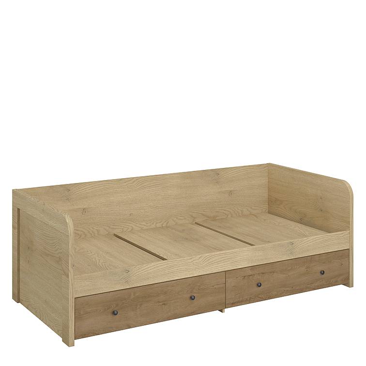 Postel Denzel 2s/90 v dekoru dub Cremona a dub Lefkas kombinuje minimalistický loftový design se stabilní konstrukcí a praktickými dvěma zásuvkami, ideální do moderního studentského pokoje.