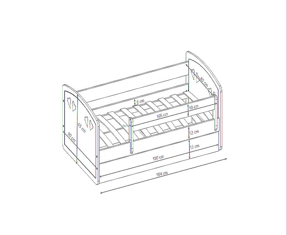 Dětská postel JULIE 180 x 80 se šuplíkem, šedá