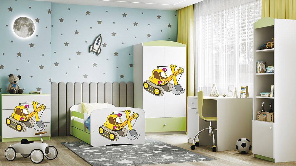 Nábytek EVA - úvod S motivem Dětská postel MONTE - bagr 180x80 cm, se šuplíkem