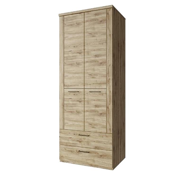 DOORSET skříň 2D2S dub navarra - je vyrobena v moderním a jednoduchém stylu.   Skříň je zhotovena z lamina 16 mm v odstínu dub navarra.   Klasická podoba skříni s klasickým dřevěným vzorem dává řadu možností, jak zařídít jakykoli interiér ve vaší domácnosti.   Skříň 2D2S je vhodná hlavně do ložnic nebo studenských pokojů. Nabízí úložný prostor v podobě police a šatní tyče. Ve spodní částí skříně se nachází praktické 2 šuplíky.   Povolené zatížení na plných policích - 5 kg.   Disponuje plnovýsuvnými pojezdy šuplíku, plastovými úchyty v černé barvě.   3 typy PC stolů a spojovací úhlový konektor, vhodný do kanceláře.   Nadčasové barvy s výraznými tmavými partiemi odpovídají nejnovějším interierovým trendům.   Široká nabídka kolekce DOORSET vám umožní zařídit téměř celý váš domov.