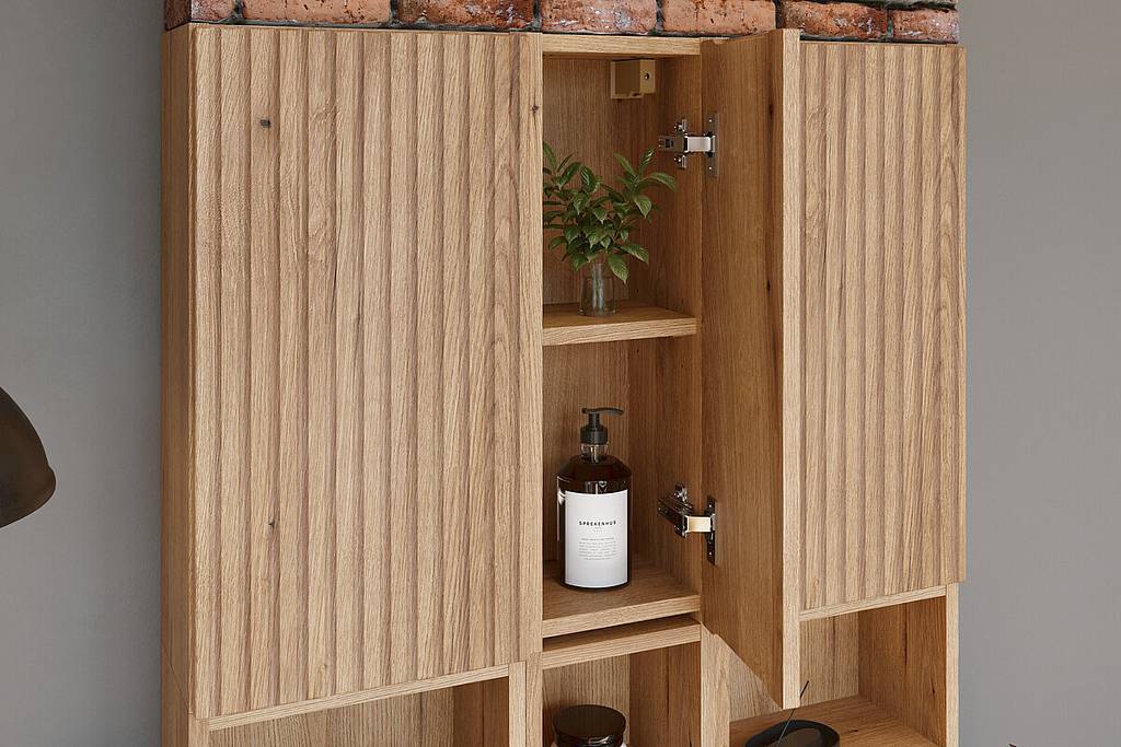 Horní skříňka do koupelny o šířce 20 cm z kolekce Nova Coast Evoke vyniká jednoduchým minimalistickým stylem, doplněným o svisle rýhovaná dvířka a decentně zapracovaný integrovaný úchyt. Dekor dubu Coast Evoke s autentickou kresbou dřeva přináší do koupelny přirozený, hřejivý a příjemně útulný vzhled.