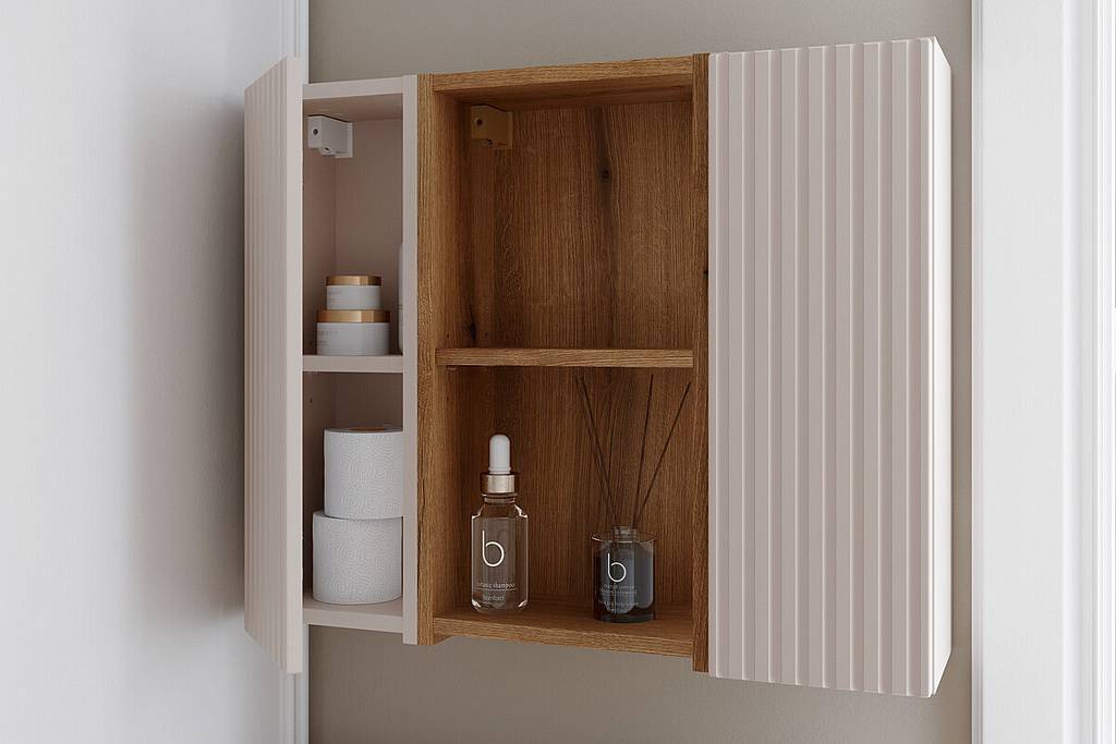Horní regál do koupelny 30 cm z kolekce Nova Coast Evoke nabízí praktický otevřený úložný prostor. Zaujme teplým přírodním odstínem a jemnou strukturou dřeva, jež vnese do koupelny útulnou atmosféru.