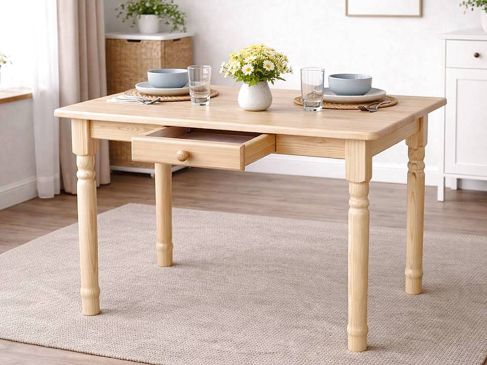 Jídelní stůl z masivu MET ST06 se šuplíkem:bez povrchové úpravy