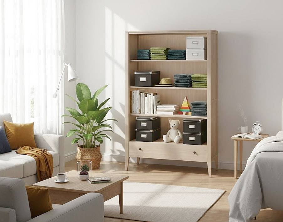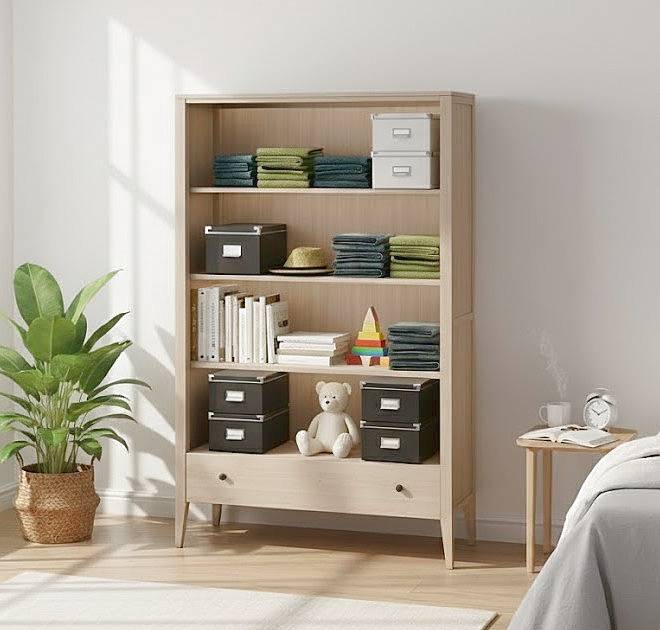 Nábytek EVA - úvod Maroko přírodní Knihovna se šuplíkem MAROKO RT2 120cm přírodní buk