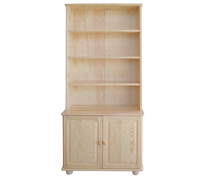 Knihovna je vyrobena z borovicového masivu. Tato knihovna nabízí dostatek úložného prostoru. Knihovna nabízí 3 police a skříňku s dvířky s jednou policí uvnitř. Záda knihovny jsou z překližky. Knihovna stojí na kulatých dřevěných nožkách.Nábytek je mořený a poté lakovaný polomatným lakem. Foto je ilustrační. Barevné provedení viz. doplňující obrázek. Vemte prosím na vědomí, že odstín barvy na vzorníku se může mírně lišit od skutečného odstínu na nábytku.