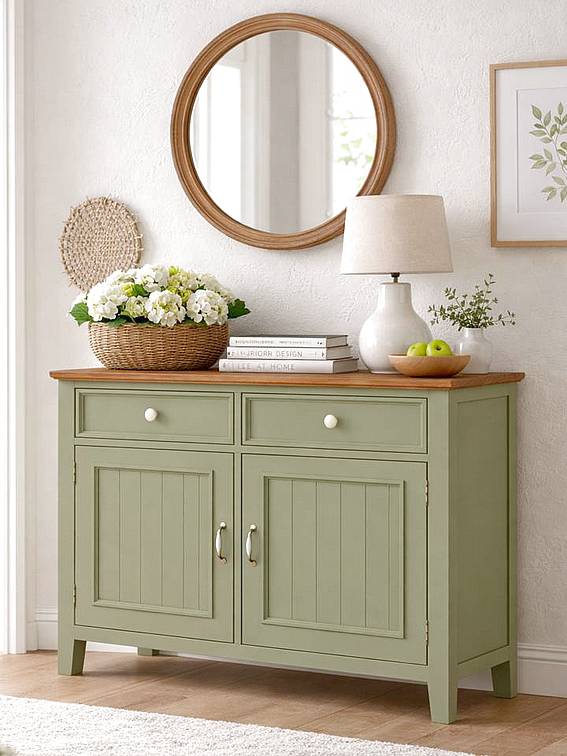 Nábytek EVA - úvod Jídelní stoly Levande olivové Komoda LEVANDE SLIM K4P z masivu olivová