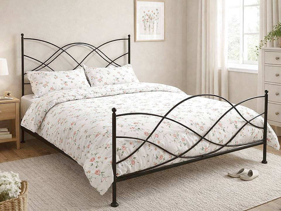 Kovová postel Elisa ve stříbrné patině e vyrobená z kvalitní oceli o průměru 25 mm a ozdobné tyče s průměrem fi 12 mm. Výška postele od země k roštu je 25 cm. Výška čela u hlavy je 106 cm, výška čela u nohou je 81 cm.    Postel má stabilní konstrukci, která nevrže. Na ocelové konstrukci je položený dřevěný rošt. Matraci o rozměru 140x200 cm je nutno dokoupit. Kovová postel je ve finální fázi natřená základní černou strukturální barvou a ručně přidávána stříbrná patina.   Montáž kovové postele je velice jednoduchá bez jakéhokoliv nářadí díky osvědčenému klínovému spojení.   Foto je ilustrační. Postel je dodávána bez dekorací.