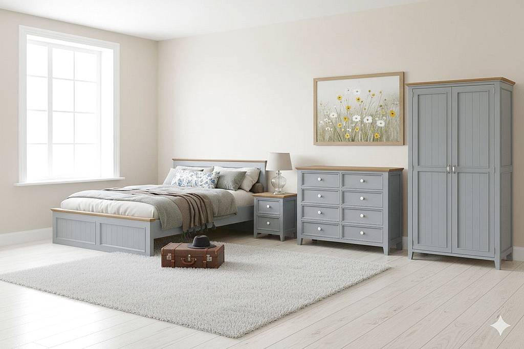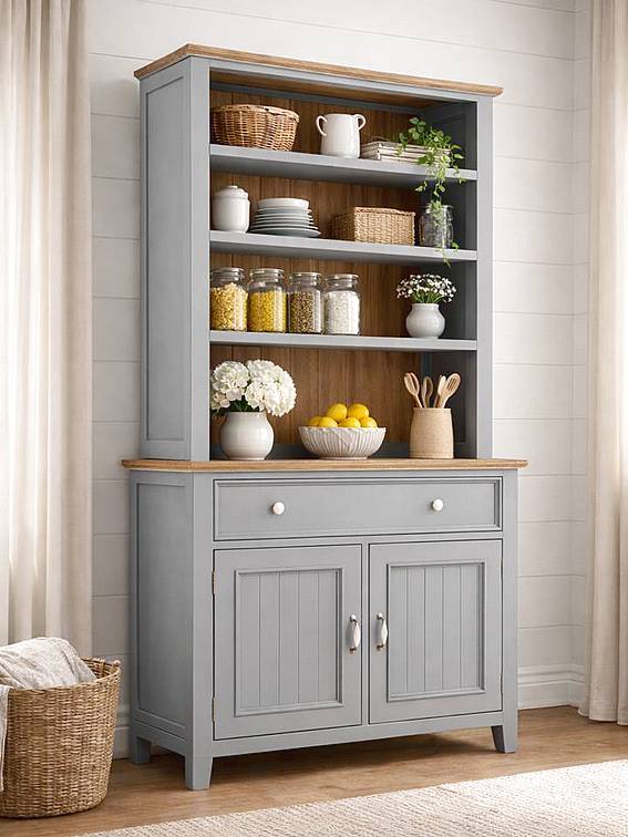 Kredenc LEVANDE SLIM R4P z masivu šedomodrá