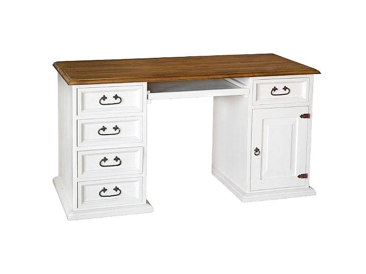 Masivní psací stůl SWEET HOME BIR-14 je psací stůl s šuplíky a výsuvem vyrobený z masivního borovicového dřeva. Masivní stůl je upraven bílou vodou ředitelnou barvou, horní deska je dostupná v několika barevných variantách. K dispozici je povrchová úprava lakem nebo voskem.