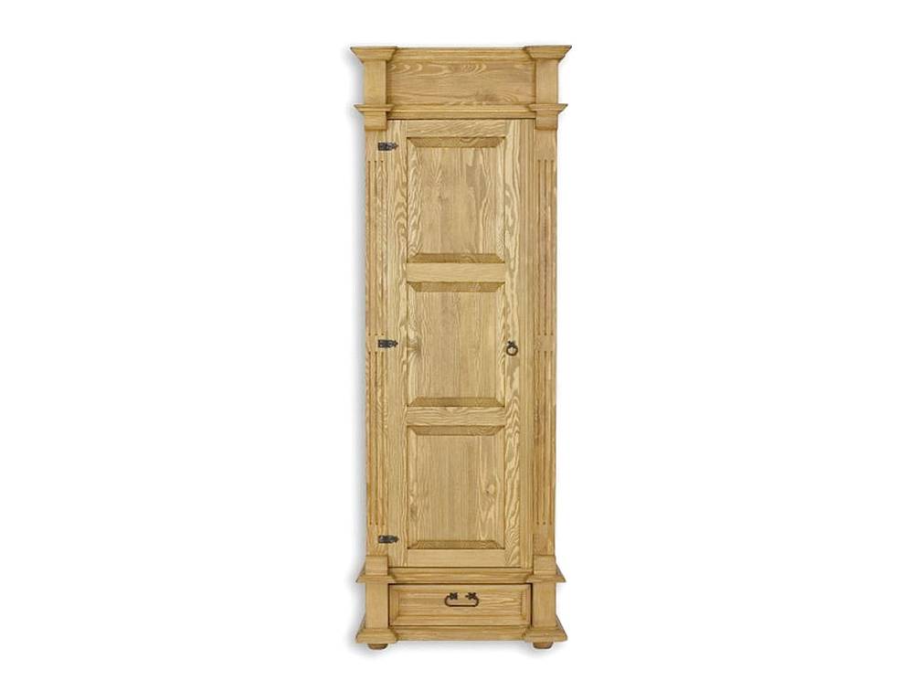 Rustikální dřevěná šatní skříň z kolekce Classic Wood je vyrobena ze 100% masivního borovicového dřeva, stejně jako záda skříně. Jednodveřová dřevěná šatní skříň má kulaté nožky, které dají skříni eleganci. Naše šatní skříně dokončujeme vosky na bázi včelí... Více