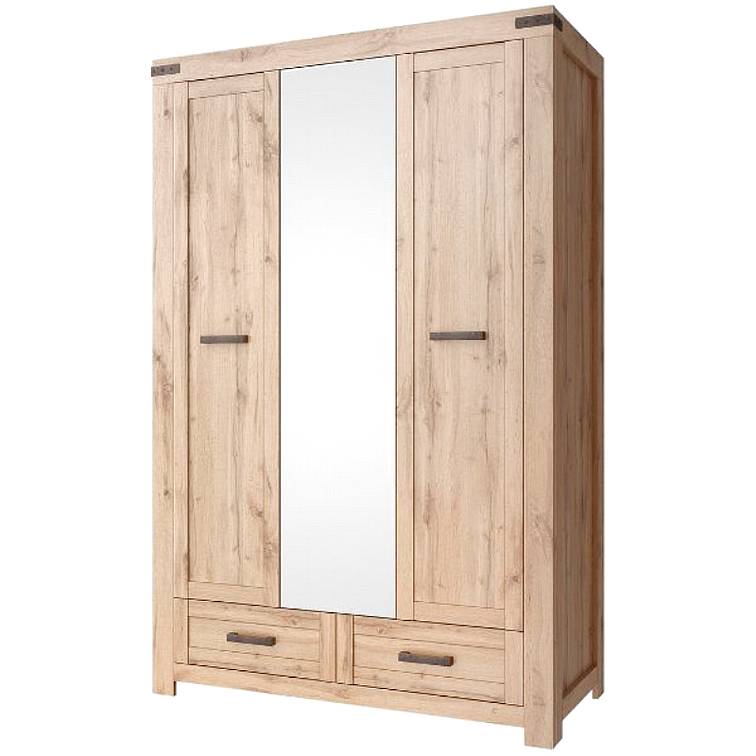 MORITZ skříň se zrcadlem 3d2s - dub wotan - je zde místo s tyčí na zavěšení kabátů, bund, má také police, na které můžete uspořádat oblečení. Velké praktické šuplíky. Velké zrcadlo majiteli jistě usnadní každodenní výběr správného šatníku.   Kolekce MORITZ v dubu wotan je kus nábytku v rustikálním stylu, který bude elegantním a praktickým doplňkem zařízení obývacího pokoje, jídelny, ložnice i předsíně. Vyznačuje se jednoduchým tvarem a přírodní dubovou barvou, která se bude hodit téměř do každého interiéru bez ohledu na jeho barvu.   Kolekce MORITZ je vyrobena z LDTD, Čela a dvířka jsou z MDF desky, disponuje kulíčkvými pojezdy šuplíku. Masivní plastové černé úchytky dokonalé ladí s nábytkem.   Volitelně lze nalepit ozdobné kování. Zákazník si sám určí, kde budou umístěny.   Jednoduchý design kolekce MORITZ poskytuje množství nádherných aranžmá.
