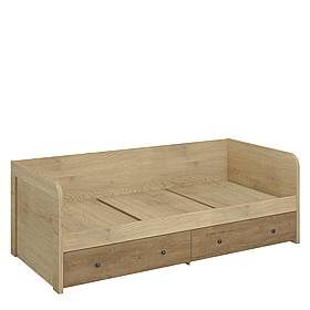 Postel Denzel 2s/90 v dekoru dub Cremona a dub Lefkas kombinuje minimalistický loftový design se stabilní konstrukcí a praktickými dvěma zásuvkami, ideální do moderního studentského pokoje....