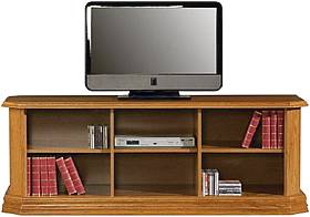 Televizní stolek KINGA G z kolekce rustikálního nábytku KINGA je otevřeným tv stolkem se spoustou odkládacího prostoru pro DVD přehrávač i jiné různé dekorace. Díky šířce tohoto TV stolku nemusíte kupovat celou obývací stěnu. Televizní stolek můžete ...