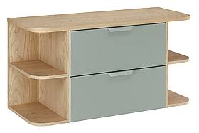 Více o produktu Vysoká koupelnová skříňka ASTER zelená/dub cremona s regálem