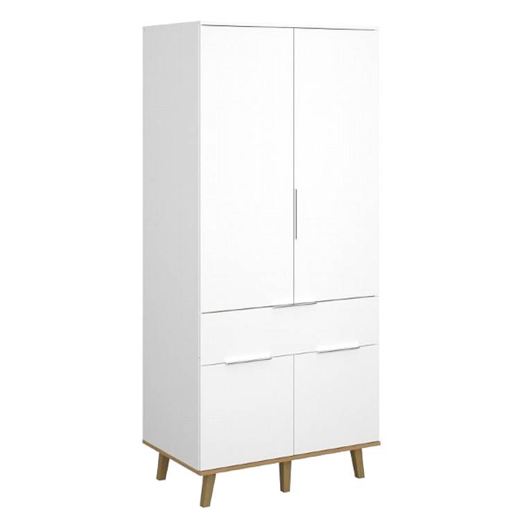 NEPTUN šatní skříň 4d1s bílá / dub kamenný - je vybavena šatní tyči a polici a proto má k dispozici velký užitný prostor pro ukladání oblečení.  V dolní částí nabízí úložný prostor v podobě jedné skříňky s polici a jednoho šuplíku.   Kolekce NEPTUN má mnoho možností, jak zařídit domácí kancelář. Pracujte po svém.   Nabízí značny výběr nábytku pro pohodlné vybavení kanceláře.   Kolekce NEPTUN má nadčasové barvy - bílá v kombinaci se vzorem kamenného dubu.   Korpus kolekce NEPTUN je vyroben LDTD, jsou použity PVC hrany. Pojezdy zásuvek jsou kuličkové plnovýsuvné. Čela a dvířka jsou LDTD, hrana PVC. Horní deska je vyrobena LDTD, jsou použity PVC hrany. Nábytek je opatřen plastovými úchyty a stoji nábytek na dřevěných nohach.   Je určen pro samostatnou montáž, dodáván v balících.