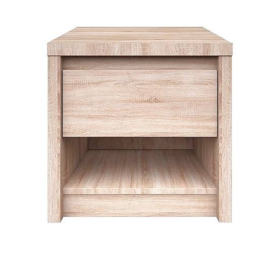 Noční stolek NORTON je součástí kolekce NORTON, která je charakteristická netradičním designem připomínajícím vzhled masivního nábytku. Nabízí úložný prostor v podobě jednoho šuplíku a jedné otevřené poličky. Stolek je vhodný do ložnice či studentského pokoje. Je vyroben z lamina v barevném provedení dub sonoma.   Stolek lze kombinovat s dalším nábytkem z kolekce NORTON, a vytvořit si tak pracovnu, ložnici nebo obývací pokoj ve stejném designu.   Barva se může ve skutečnosti lehce lišit v souvislosti s nastavením monitoru, světlem apod.
