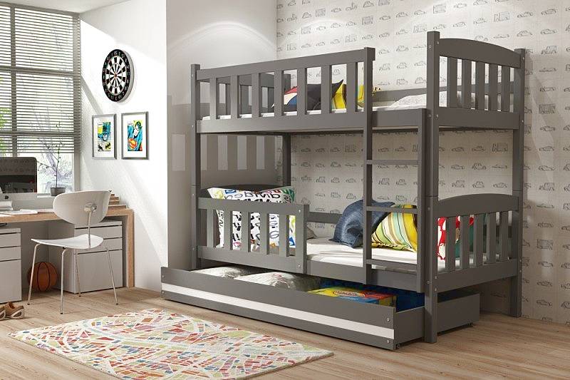 Patrová postel KUBÍK se šuplíkem 190 cm - barva grafit