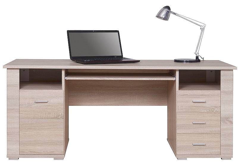 PC stůl GRESS osloví zákazníky, kteří mají rádi jednoduchost a eleganci. Počítačový stůl je vhodný do kanceláří, pracoven i do studentských pokojů. Nabízí velké množství úložných prostorů v podobě tří šuplíků a skříňky, výhodou je i velká pracovní plocha.   Stůl je vyroben z lamina. Na hrany je použita ABS hrana, což zajišťuje odolnost a delší životnost nábytku. Velmi efektní jsou i vroubkované ozdobné lišty, které svědčí o kvalitním provedení nábytku. Ergonomické úchyty v odstínu matné oceli, působí jemným dojmem a svým vzhledem podtrhují eleganci nábytku.Stůl je v odstínu dub sonoma. Barva se může se skutečností lehce lišit v souvislosti s nastavením monitoru, světlem apod.   PC stůl GRESS lze kombinovat z dalším nábytkem z kolekce GRESS a vytvořit si tak pracovnu, jídelnu, ložnici nebo obývací pokoj ve stejném designu.