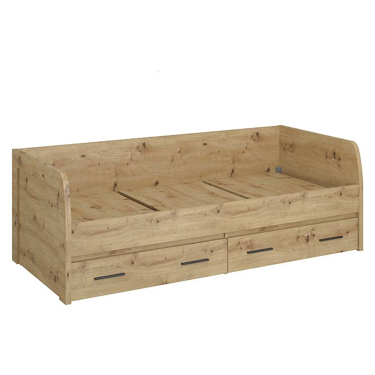 Pro milovníky jedinečných předmětů a příznivce nových produktů představujeme kolekci AYSON.   Postel 2s/90 AYSON je vyrobena z kvalitního lamina v barvě dub artisan. Toto lamino působí velice originálním a přitom přirozeným dojmem.   Rošt i matraci je nutno dokoupit. Doporučené rozměry matrace jsou 90x200 cm. Rošt, který lze uložit do této postele musí být maximálně o výšce 2,5 cm. Nedoporučujeme tedy rošty lamelové. Postel disponuje kuličkovými pojezdy šuplíku a kovovými úchyty.   Dětská postel je stabilní a kvalitní postel s pevnou konstrukcí, která se smontuje pomocí šroubů podle jednoduchého návodu, který je součástí každého balení.   Postel lze volně kombinovat s ostatním nábytkem z kolekce AYSON, což vám umožňuje sestavit si velice působivou jídelnu, obývací pokoj či studenský pokoj.
