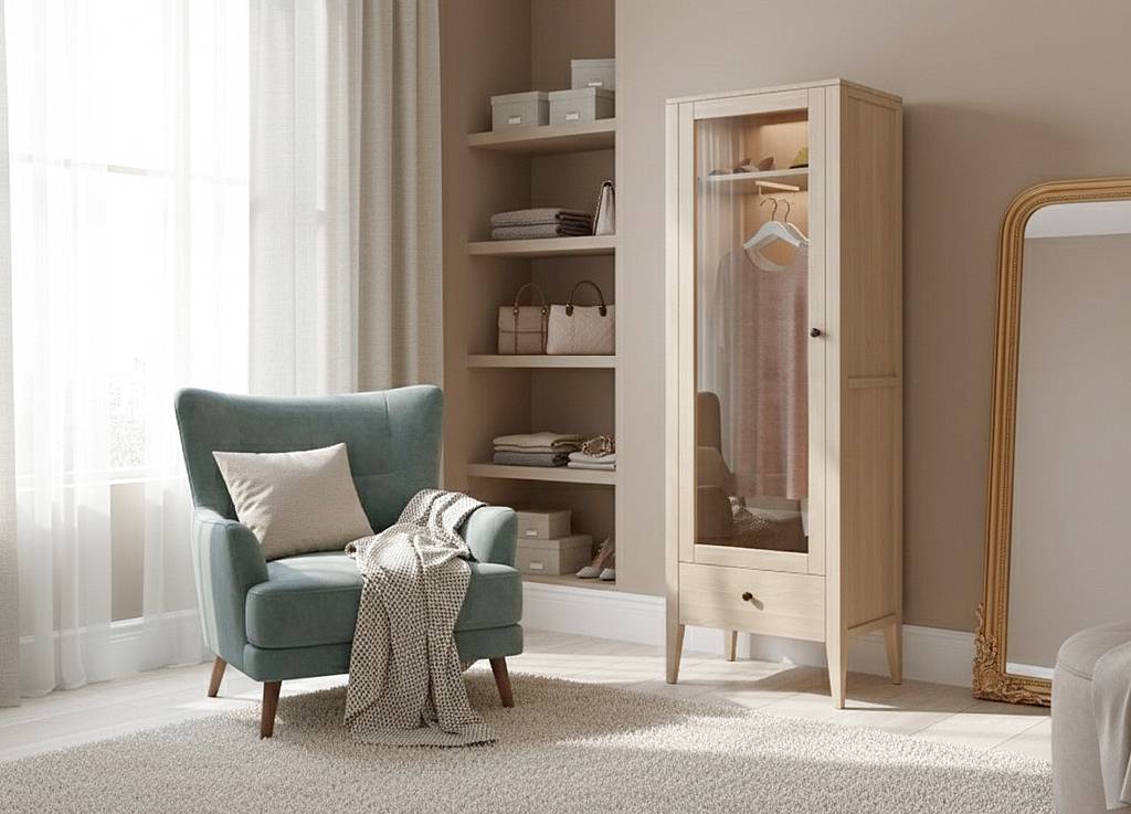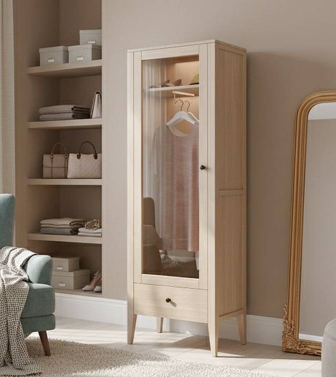 Nábytek EVA - úvod Maroko přírodní Prosklená skříň z masivu MAROKO SST1 šatní přírodní buk