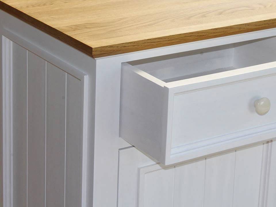 Krémová provensálská komoda LEVANDE z masivu ve francouzském stylu je elegantní buková komoda s odolnou dubovou deskou, ideální jako stylový úložný nábytek do ložnice i obývacího pokoje v romantickém venkovském interiéru Provence.