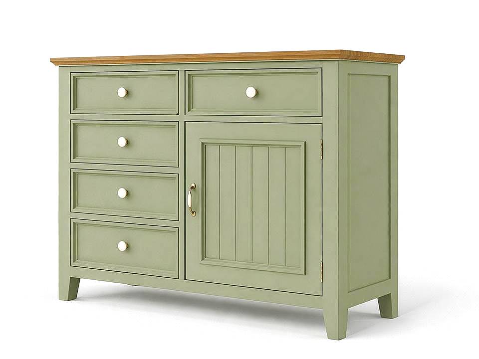 Komoda LEVANDE K7P SLIM je stylová komoda z bukového masivu, která nabídne praktické šuplíky a skříňku s polici pro přehledné uložení oblečení, knih či jiných potřeb. Komoda LEVANDE je vyrobena z masivního bukového dřeva a ošetřena akrylovou barvou . Horní deska je vyrobená z dubového masivu, ošetřena pouze bezbarvým lakem.