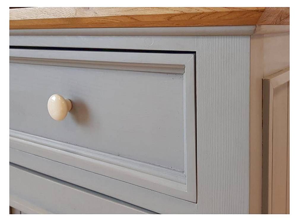 Provensálská komoda LEVANDE je elegantní komoda z masivu ve francouzském stylu. Je vyrobená z kvalitního bukového dřeva, doplněná horní deskou z dubového masivu a celé provedení je laděno do jemného krémového odstínu. Tato komoda ve stylu Provence vnese do interiéru světlost, romantiku a nadčasovou eleganci.