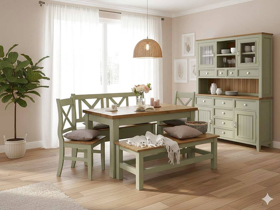 Buková komoda LEVANDE SLIM je krásná komoda v Provence stylu v olivovém odstínu, která vás svou elegancí a provedením přenese na francouzský venkov. Komoda poskytne potřebný úložný prostor a příjemnou vůní. Horní deska je z dubového masivu, což komodě dodává stylový design.