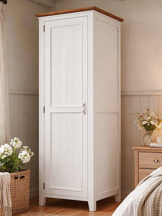 Provensálská skříň LEVANDE SLIM W1P s šatní tyčí bílá