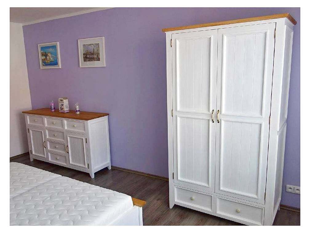 Provensálská skříň LEVANDE v jemném krémovém odstínu přináší do interiéru světlo a eleganci. Je vyrobena z kvalitního bukového masivu a doplněna horní deskou z dubového dřeva, která podtrhuje její přirozený charakter. Skříň je vybavena šatní tyčí a policemi, které umožňují přehledné a praktické uspořádání vašeho oblečení i doplňků. Stylový design ve francouzském duchu dodá každé ložnici či předsíni nádech venkovské pohody.