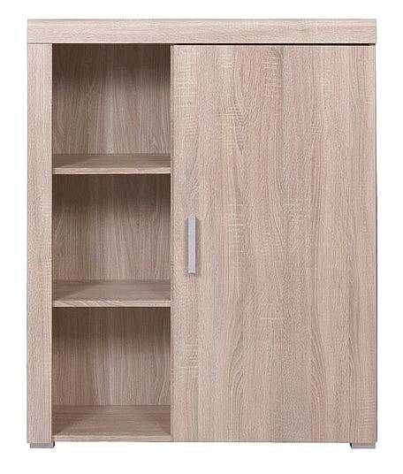 Regál DAMIS 1D je jednoduchou a přitom elegantní možností, jak zpestřit jakýkoli obývací pokoj či jídelnu.Regál se skládá z několika polic, jedny dvířka, za nimiž jsou police.   Regál DAMIS je vyroben z kvalitního lamina v barvě dub sonoma. Toto lamino působí velice originálním a přitom přirozeným dojmem. Úchyty a nožičky jsou ve stříbrné barvě a podtrhují tak efektivní krásu regálu.   Regál lze volně kombinovat s ostatním nábytkem z kolekce DAMIS, což vám umožňuje sestavit si velice působivou jídelnu, obývací pokoj či studentský pokoj.