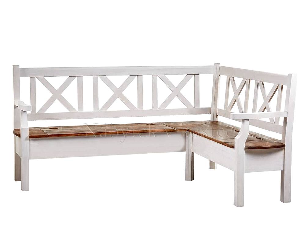 Rohová lavice SWEET HOME je jídelní lavice s područkami a úložným prostorem vyrobená z masivního borovicového dřeva. Masivní lavice je upravená bílou vodou ředitelnou barvou, horní deska je dostupná v několika barevných variantách. K dispozici je povrchová úprava lakem nebo voskem.