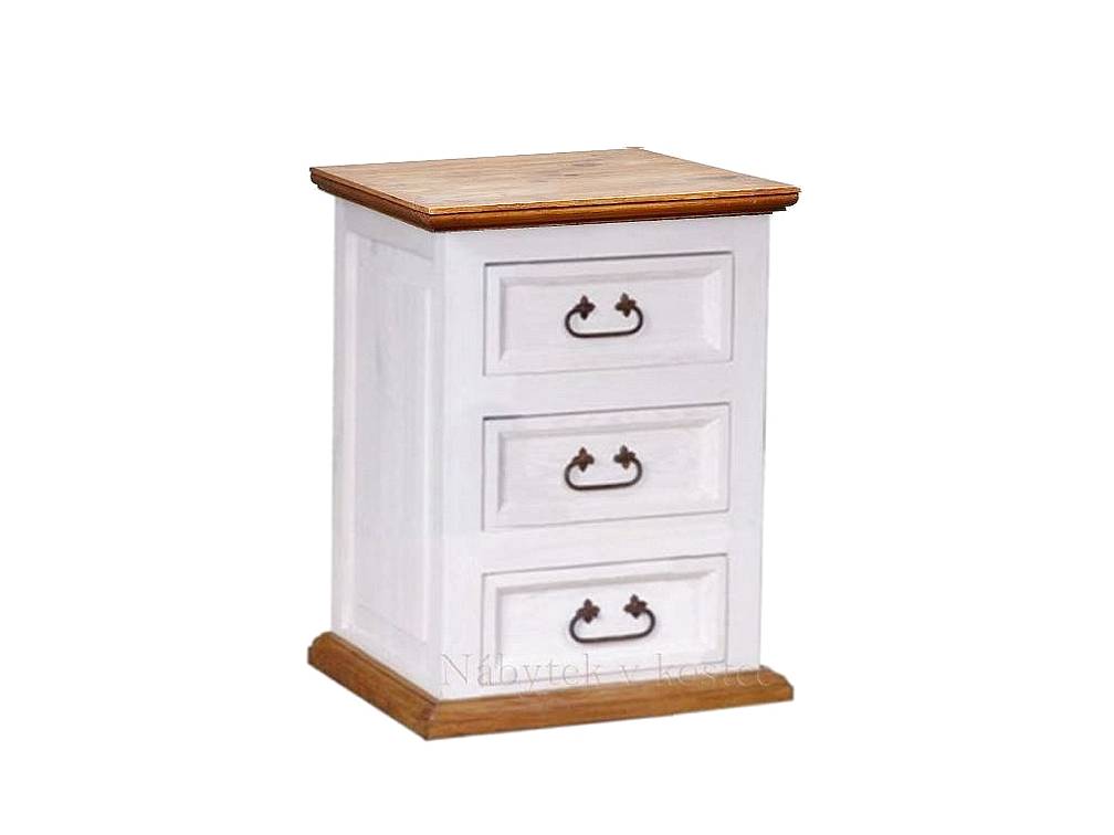 Rustikální komoda z masivu z kolekce SWEET HOME je krásný provensalský noční stolek se zásuvkami venkovského stylu, který jistě zútulní váš obývací pokoj či ložnici. Tato Vintage komoda je zhotovena z borovicového masívu a je doplněna o úchytky v retro stylu. Komoda z masivu je ošetřena vodou ředitelnou bílou barvou