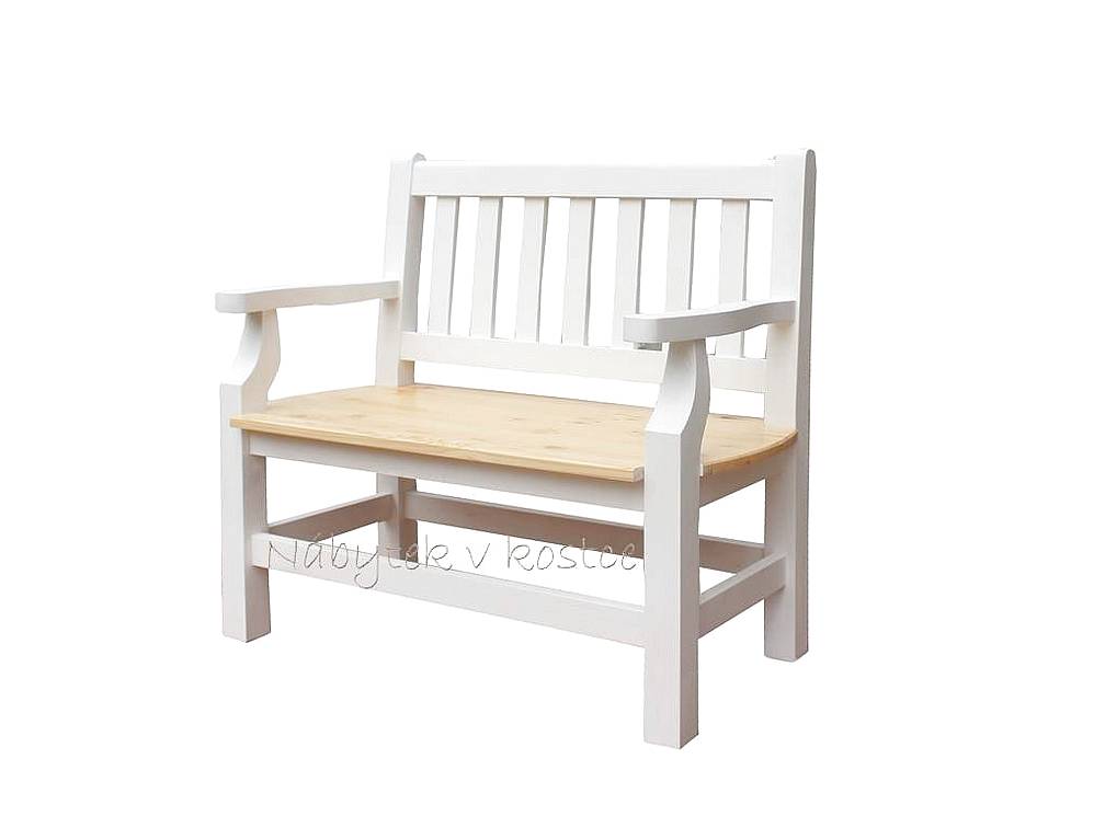 Rustikální lavice SWEET HOME je lavice s opěradlem a područkami vyrobená z masivního borovicového dřeva. Masivní lavice je upravená bílou vodou ředitelnou barvou, horní deska je dostupná v několika barevných variantách. K dispozici je povrchová úprava lakem nebo voskem.