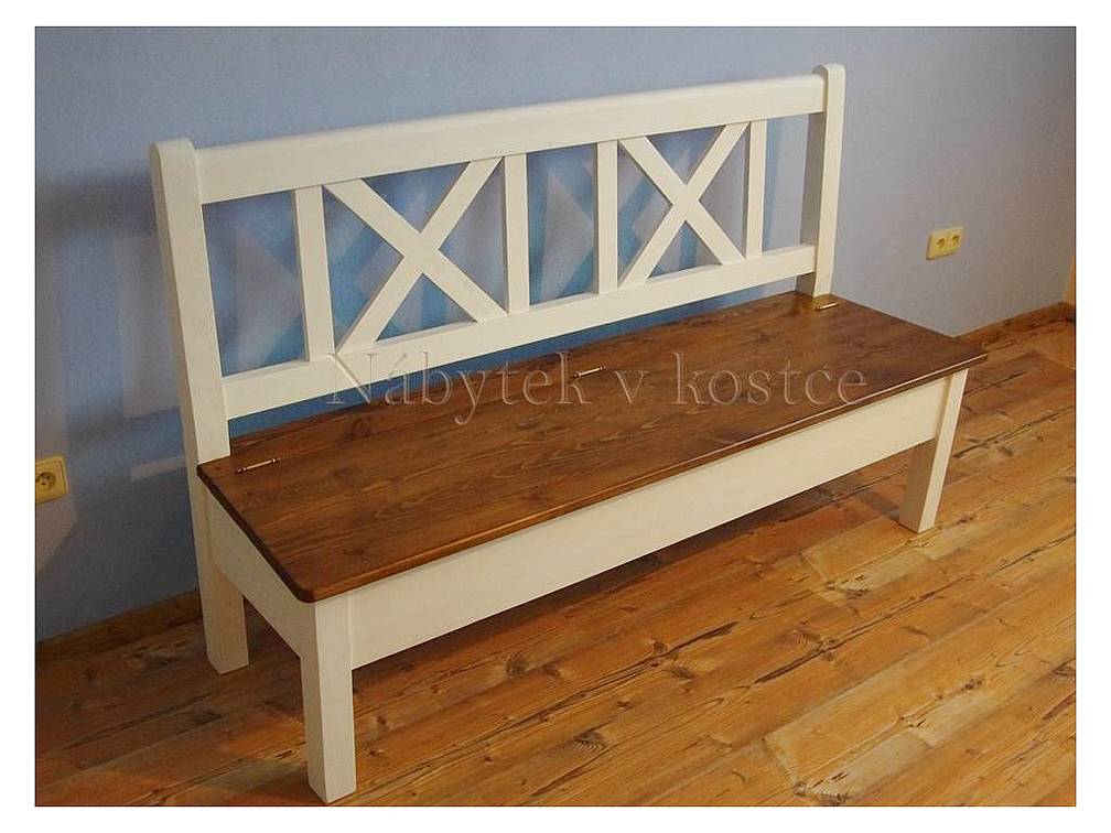Rustikální lavice SWEET HOME je lavice s úložným prostorem vyrobená z masivního borovicového dřeva. Masivní lavice je upravená bílou vodou ředitelnou barvou, Horní deska je v odstínu sv. hnědá medová lak. K dispozici je povrchová úprava lakem nebo voskem.