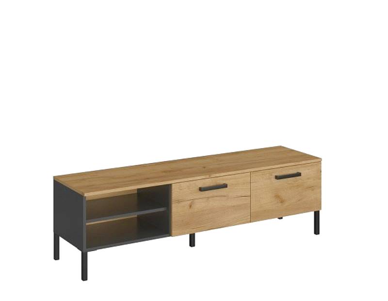 Známe vaše potřeby a víme, jak težké je vybrat nábytek, který vám bude sloužit roky. Říká se že dům je zvyk, ale také jiný, jedinečný styl, který potřebuje šanci ukázat se světu.   SANTES TV stolek 2k/155 je vyrobený z lamina v barvě dub craft zlatý / antracit. Televizní stolek je nepostradatelnou součástí každého obývacího pokoje.TV stolek nabízí úložný prostor v podobě dvou skříněk odklápěcích a jedné otevřené poličky.   TV stolek lze kombinovat s dalším SANTES nábytkem ve stejném designu.