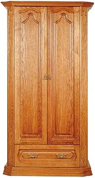 Šatní skříň KINGA nabízí velké množství úložného prostoru. Je vyrobená v rustikálním stylu s pěkným ozdobným vyřezávaním. K této šatní skříni doporučujeme i další nábytek z kolekce KINGA, se kterým vybavíte nejenom obývací pokoj, ale i jiné místnosti.   Tato šatní skříň má přední část zhotovenou z dubového masivu, boky jsou z lamina a horní + dolní část je z lakované MDF. Skříň obsahuje výsuvný šuplík, který zdobí okrasně zdobený úchyt. Zbylou část tvoří úložný prostor.   Foto je ilustrační.