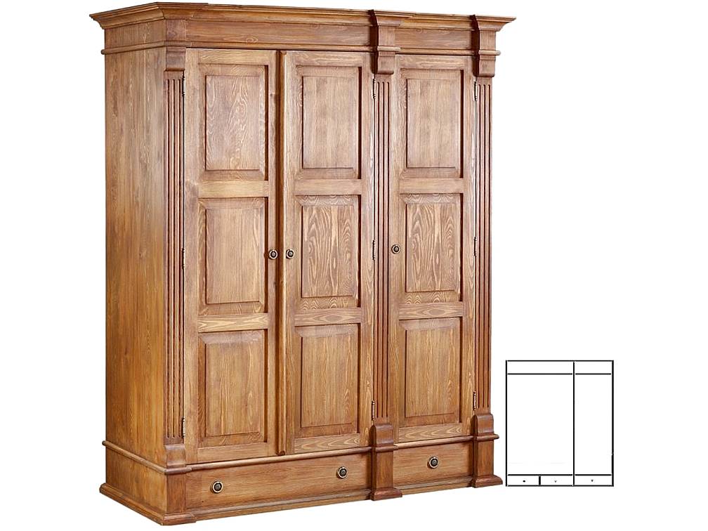 Šatní skříň z masivu MEXICANA SAV-68-A je rustikální šatní skříň vyrobená z masivního borovicového dřeva. Povrch je upraven lakem v různých barevných variantách. Masivní šatní skříň disponuje šuplíky a šatní tyčí.