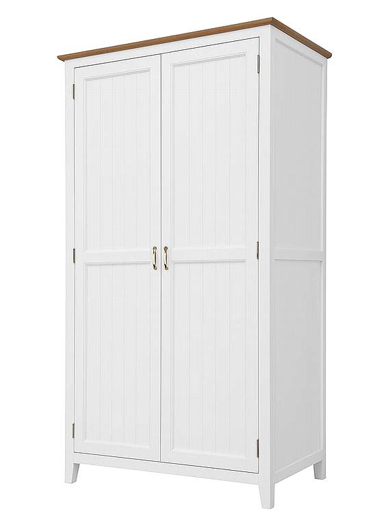 Masivní skříň LEVANDE AIR W1P v bílé barvě ve francouzském stylu nabízí šatní tyč pro přehledné uspořádání oblečení. Vyrobena je z bukového masivu s dubovou horní deskou, která dodává nábytku přírodní šarm a nadčasovou eleganci.