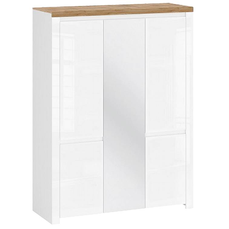 Kolekce VIGO osloví zákazníky, kteří mají rádi eleganci. Originální, bílé a bezuchytové přední strany v lesku přínašejí harmonii interiéru. Díky široké a přirozené nábytkové desce vypadá místnost jako z časopisu.   Skříň se zrcadlem VIGO 5d je krásným doplňkem vašeho obývacího pokoje, jídelny nebo ložnice. Je vyrobena z lamina. Na hrany je použita ABS hrana, což zajišťuje odolnost a delší životnost nábytku.   Skříň je kombinovaná, v pravé horní části skříně je umístěna šatní tyč a v levé části jsou umístěny 2 police.   Skříň je v odstínu bílý lesk. Odstín se může se skutečností lehce lišit, v souvislosti s nastavením monitoru, světlem apod.   Skříň VIGO lze kombinovat z dalším nábytkem z kolekce VIGO a vytvořit si tak obývací pokoj či jídelnu ve stejném designu.