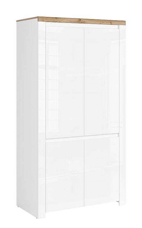 Skříň VIGO 4d osloví zákazníky, kteří mají rádi  eleganci. Originální, bílé a bezúchytové přední strany v lesku přínašejí harmonii interiéru. Díky široké a přirozené nábytkové desce vypadá místnost jako z časopisu.   Skříň je krásným doplňkem vašeho obývacího pokoje, jídelny nebo ložnice.  Je vyrobena z lamina. Na hrany je použita ABS hrana, což zajišťuje odolnost a delší životnost nábytku.   Skříň je kombinovaná, v horní části skříně je umístěna šatní tyč a v dolní části jsou umístěny 2 police.   Skříň je v odstínu bílý lesk. Odstín se může se skutečností lehce lišit, v souvislosti s nastavením monitoru, světlem apod.   Skříň VIGO lze kombinovat z dalším nábytkem z kolekce VIGO a vytvořit si tak obývací pokoj či jídelnu  ve stejném designu.