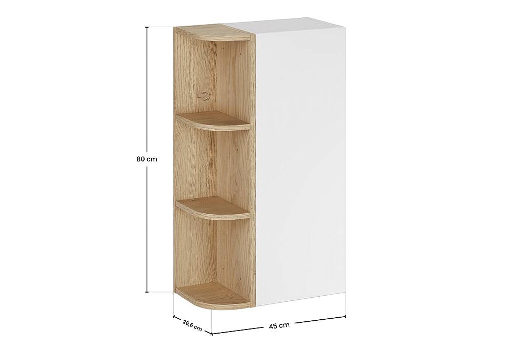 Horní jednodveřová skříňka z kolekce Aster White vyniká minimalistickým designem v kombinaci matné bílé a dekoru dub Cremona, který dodává interiéru moderní a čistý vzhled. Praktické využití zajišťuje systém „push to open“, tiché dovírání a možnost kombinace s dalšími moduly. Díky svému univerzálnímu provedení se hodí nejen do koupelny, ale i do dalších prostor, kde oceníte jednoduchý styl a efektivní využití úložného místa.