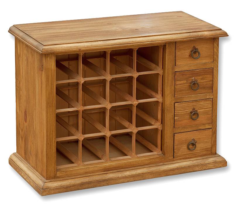 Masivní skříňka na víno kolekce MEXICANA je krásná komoda s vinotékou se zásuvkami, která jistě zútulní váš obývací pokoj, či kuchyň. Tato rustikální komoda je zhotovena z borovicového masívu a je doplněna o úchytky v retro stylu. Masivní komoda je povrchově ošetřena lakem.