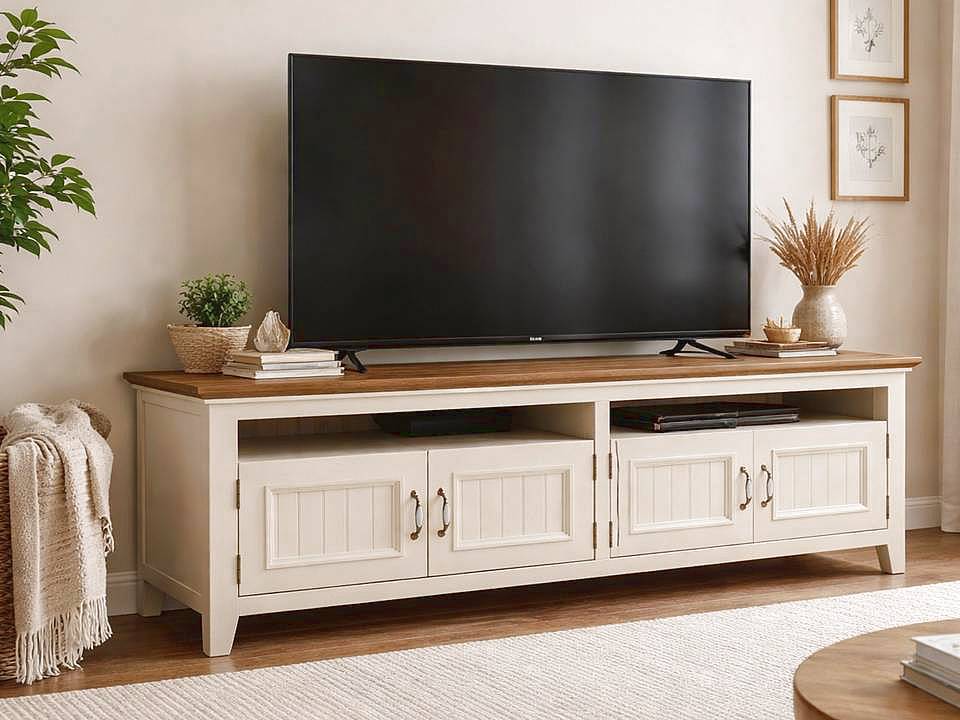 TV stolek LEVANDE K5P z masivního dřeva v krémovém odstínu je stylový televizní stolek inspirovaný francouzským provensálským venkovem. Vysoká kvalita masivního bukového rámu kombinovaná s pevnou dubovou deskou vytváří nadčasový a elegantní kus nábytku s praktickým úložným prostorem pro TV i doplňky. Skvěle doplní obývací pokoj a harmonicky ladí s dalšími prvky z kolekce Provence.