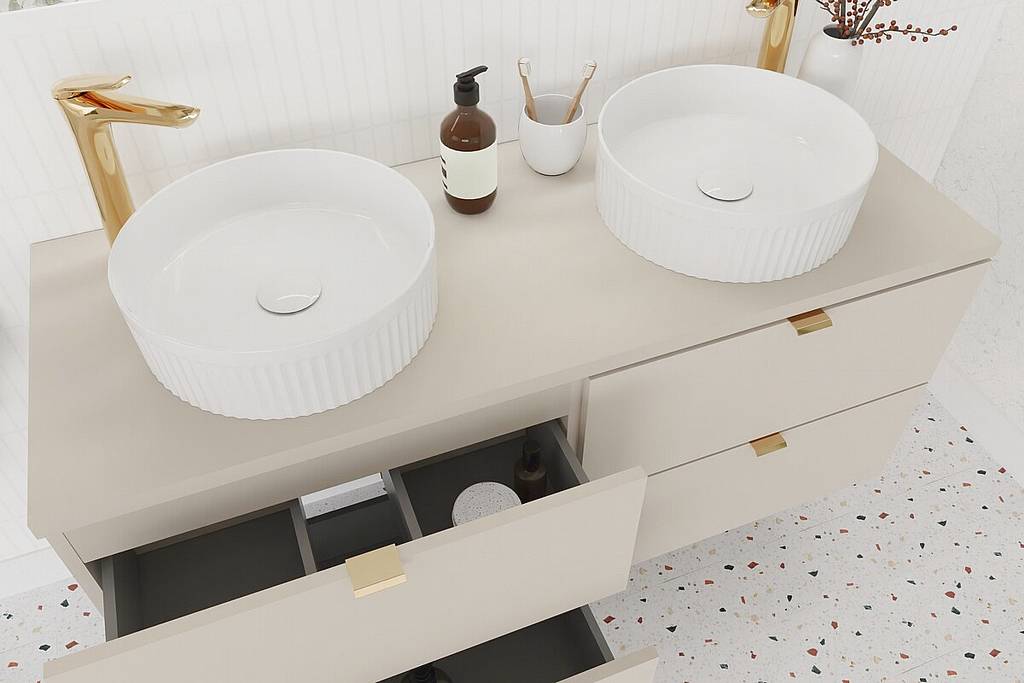 Skříňka s deskou dub cremona 120 cm Aster Green s umyvadly představuje moderní koupelnový nábytek v minimalistickém stylu s elegantním matným odstínem Aloe – zelená. Hladká čela bez rušivých prvků a nenápadně integrovaná úchytka vytvářejí čistý a mod... Více