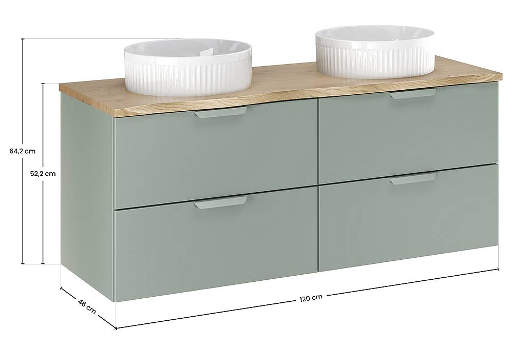 Umyvadlová skříňka do koupelny ASTER 120 cm zelená/dub cremona s umyvadly