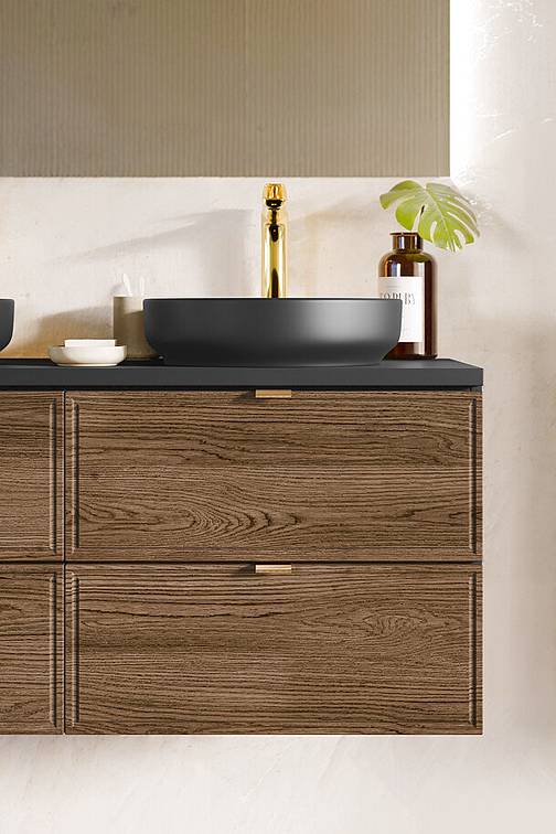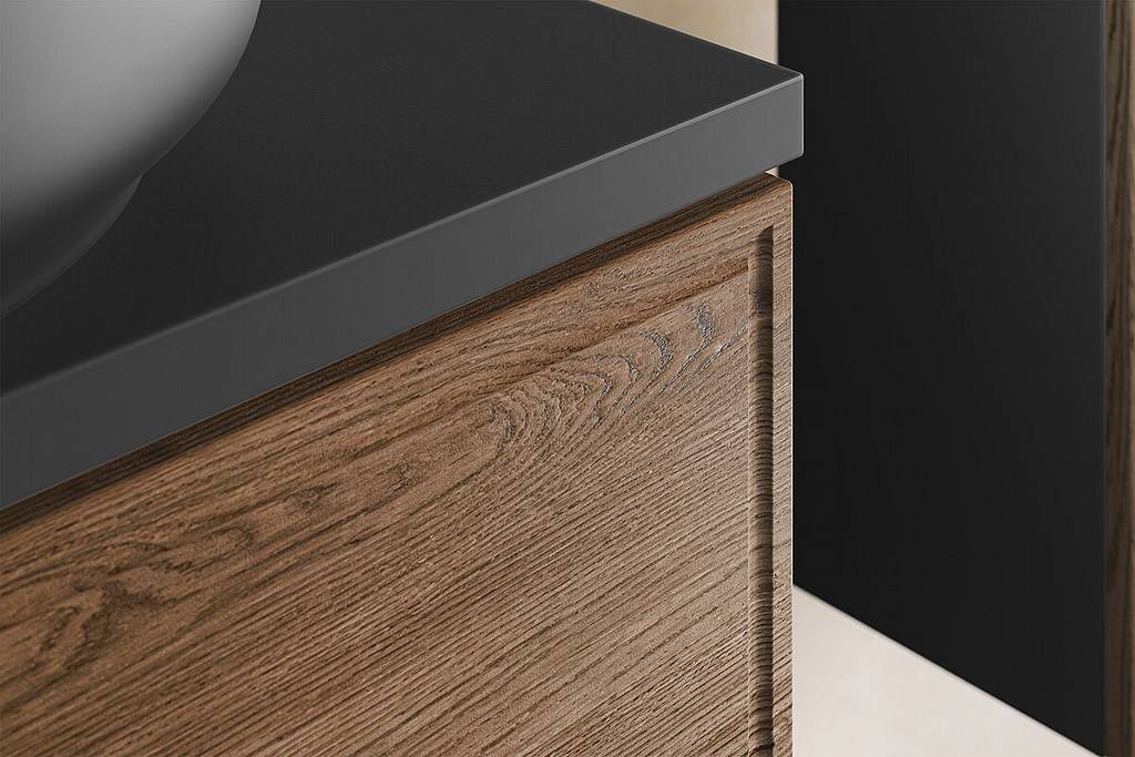 Koupelnová skříňka TALIA Casella představuje stylový a kvalitní prvek, který propojuje klasický vzhled s moderními prvky. Dekor dubu Casella v kombinaci s matnou černou vytváří výrazný kontrast a dodává koupelně nadčasovou eleganci.