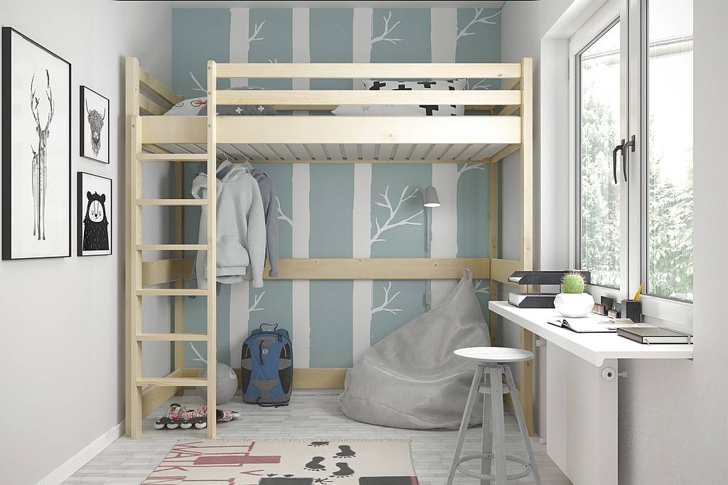 Vyvýšená postel z masivu ANDY 90 cm levá - bezbarvý lak