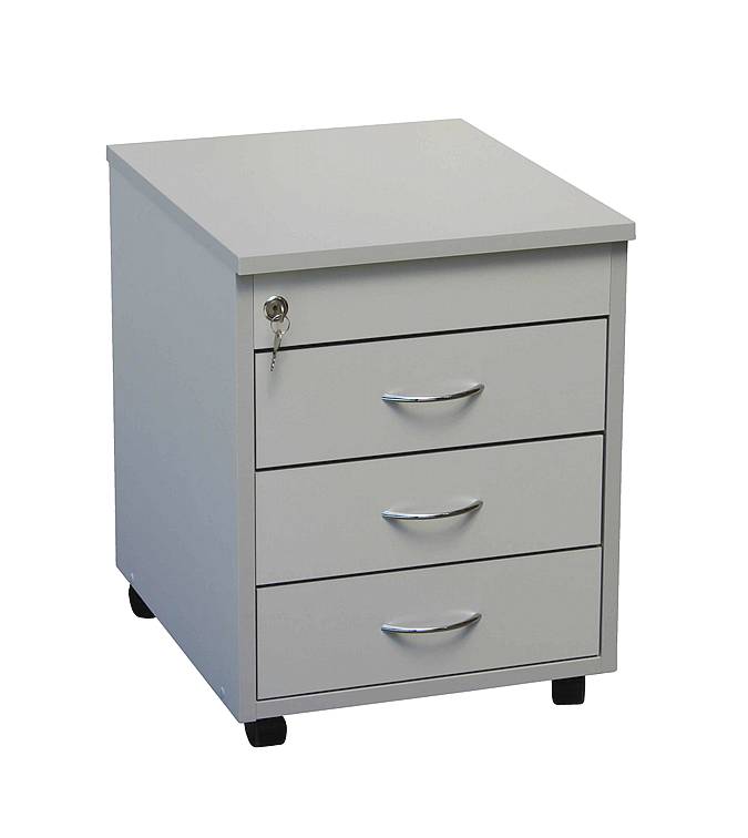 Zásuvkový kotejner je vhodný k psacím a PC stolům. Kontejner je vybaven kolečky pro snadnou manipulaci. Obsahuje tři uzamykatelné zásuvky. Vnitřní rozměr šupíků je 32 x 38 x 9 cm. Dodáme smontovaný.